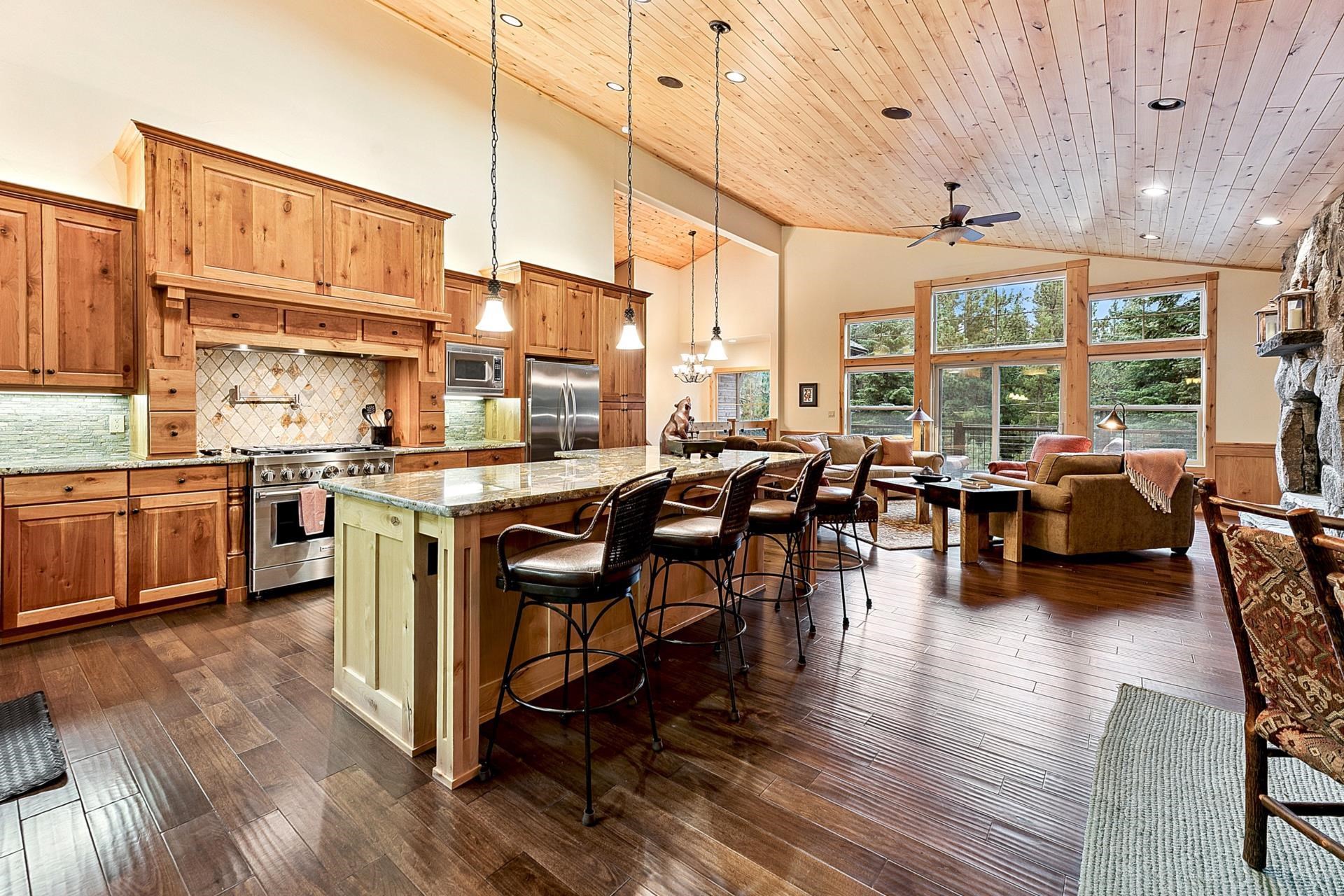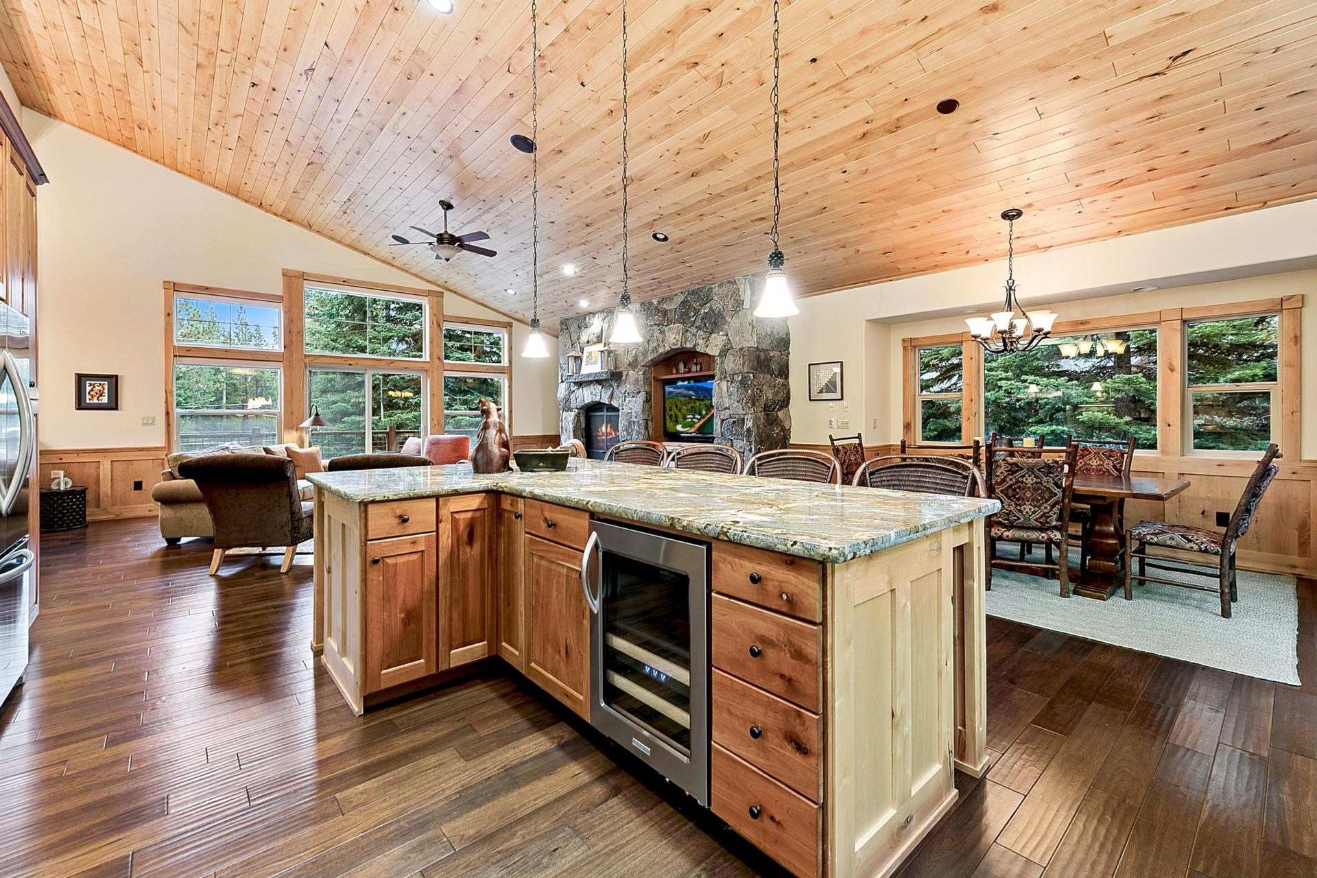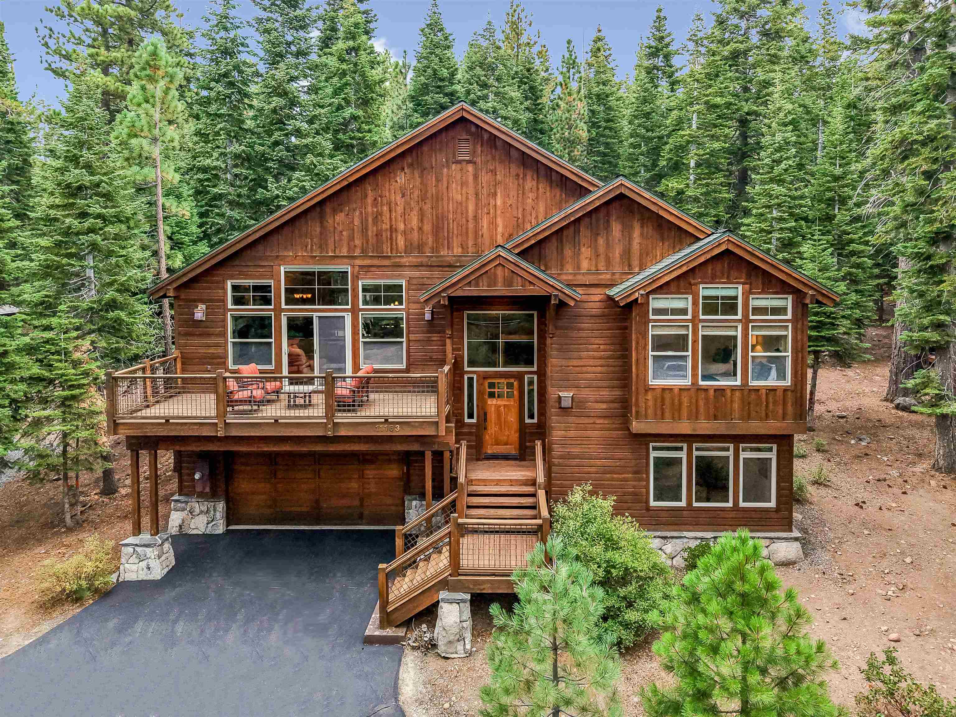 Open House Sat 11/08 10a-Noon | Looking for a sun-filled Tahoe Donner retreat with ultimate privacy? This stunning Tahoe Donner residence spans 3,381 square feet and radiates warmth and light from every corner. Featuring four bedrooms plus a versatile office that can serve as a fifth bedroom, there's ample room for family and friends. The spacious bonus room, complete with a wet bar and gas fireplace, makes for an ideal entertaining space, while the open kitchen showcases a new KitchenAid range, beautiful hickory hardwood floors, and dramatic granite rock accents throughout. Functionality meets convenience with two thoughtfully placed powder rooms and a large laundry room. This home has been meticulously maintained and is truly turnkey and ready for your Tahoe life. Step outside to a large, private yard, an ideal setting for relaxed gatherings. This lot backs up to open space for true privacy. The expansive deck includes a covered section - perfect for year-round hot tub enjoyment or outdoor dining, snow or shine. Sitzmark is known for being quiet and private within lower Tahoe Donner. Owners enjoy access to an incredible array of year-round amenities: downhill and cross-country skiing, a championship 18-hole golf course, hiking and biking trails, pools, tennis, a private beach club at Donner Lake, fitness center, and more. With its immaculate condition, versatile floor plan, and unbeatable location, 11163 Sitzmark is ready to be enjoyed as a full-time residence or mountain getaway. Defensible space was just completed 09/10.
