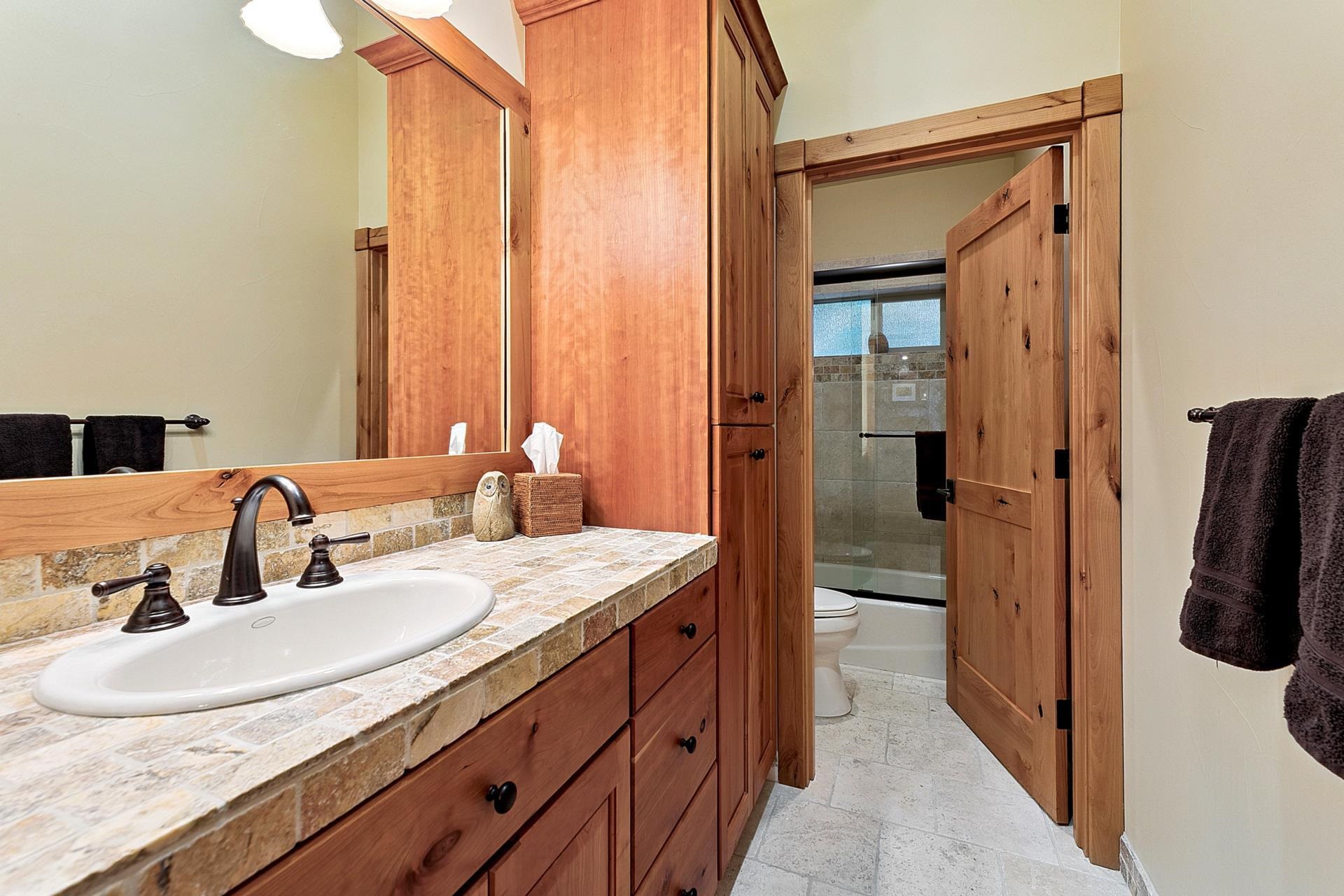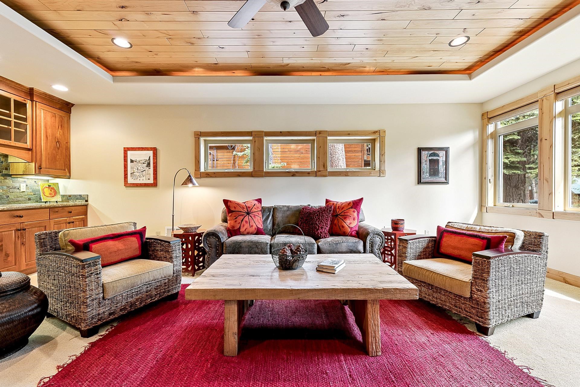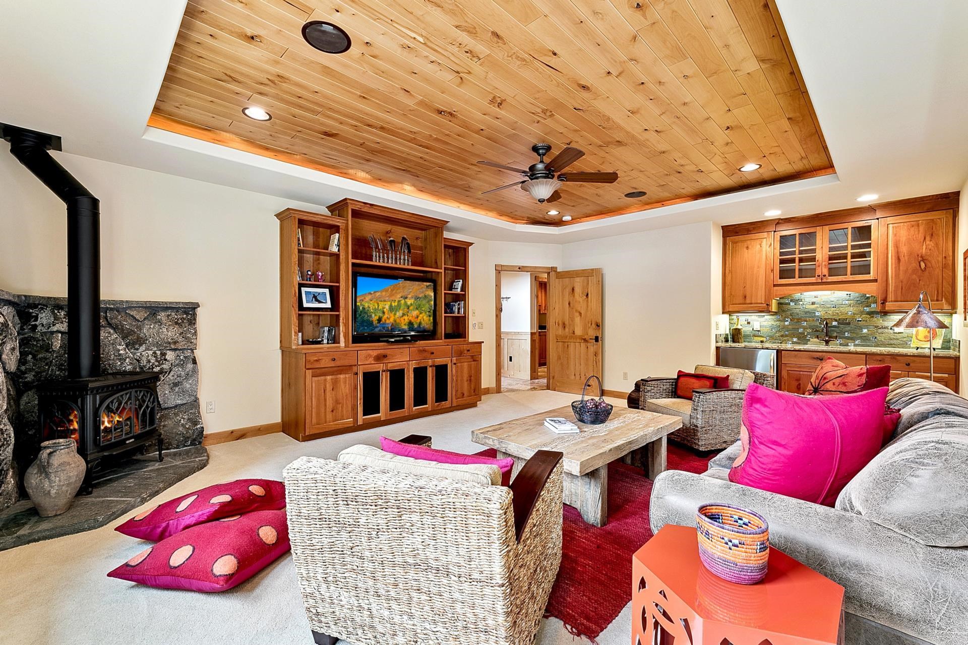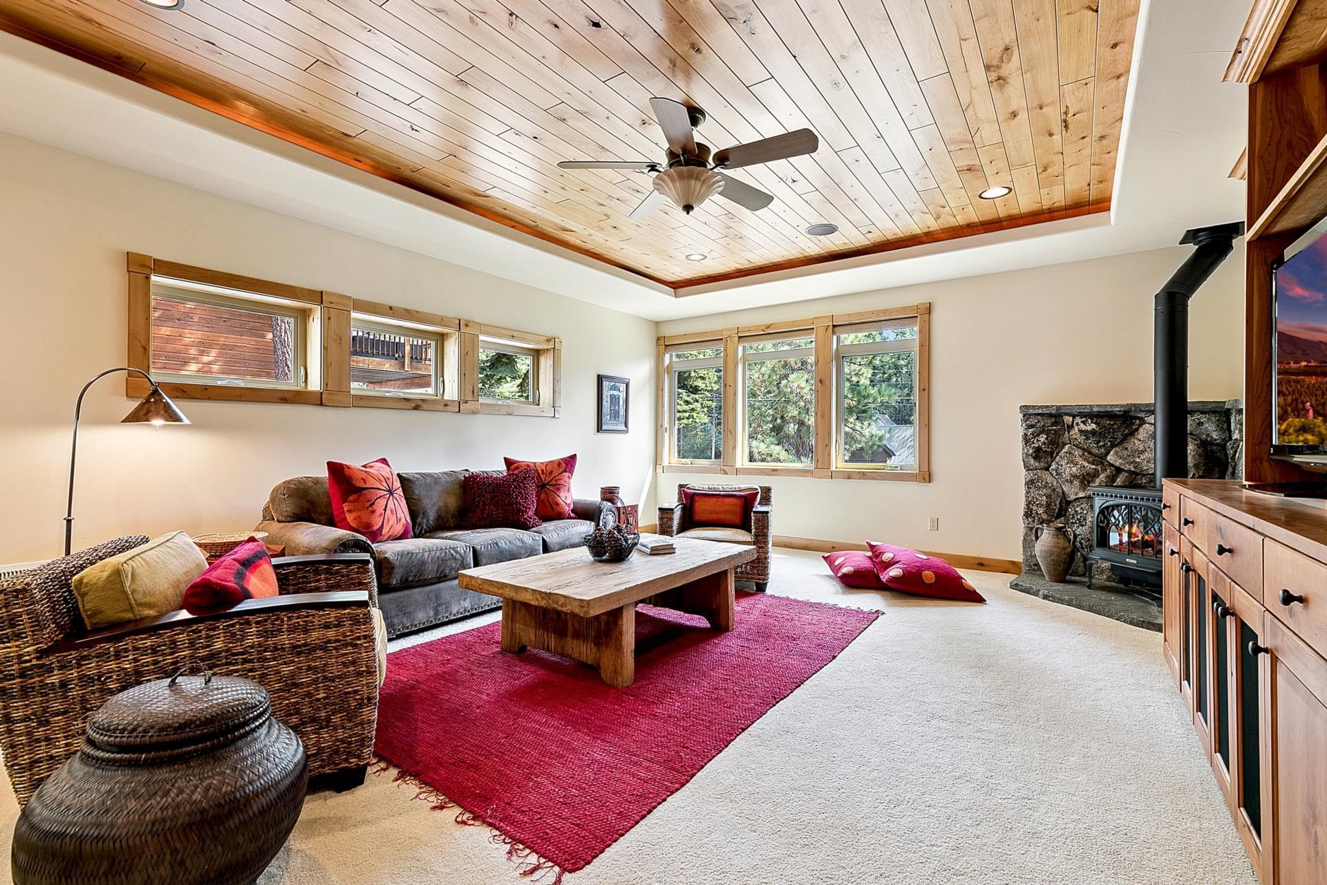 Open House Sat 11/08 10a-Noon | Looking for a sun-filled Tahoe Donner retreat with ultimate privacy? This stunning Tahoe Donner residence spans 3,381 square feet and radiates warmth and light from every corner. Featuring four bedrooms plus a versatile office that can serve as a fifth bedroom, there's ample room for family and friends. The spacious bonus room, complete with a wet bar and gas fireplace, makes for an ideal entertaining space, while the open kitchen showcases a new KitchenAid range, beautiful hickory hardwood floors, and dramatic granite rock accents throughout. Functionality meets convenience with two thoughtfully placed powder rooms and a large laundry room. This home has been meticulously maintained and is truly turnkey and ready for your Tahoe life. Step outside to a large, private yard, an ideal setting for relaxed gatherings. This lot backs up to open space for true privacy. The expansive deck includes a covered section - perfect for year-round hot tub enjoyment or outdoor dining, snow or shine. Sitzmark is known for being quiet and private within lower Tahoe Donner. Owners enjoy access to an incredible array of year-round amenities: downhill and cross-country skiing, a championship 18-hole golf course, hiking and biking trails, pools, tennis, a private beach club at Donner Lake, fitness center, and more. With its immaculate condition, versatile floor plan, and unbeatable location, 11163 Sitzmark is ready to be enjoyed as a full-time residence or mountain getaway. Defensible space was just completed 09/10.