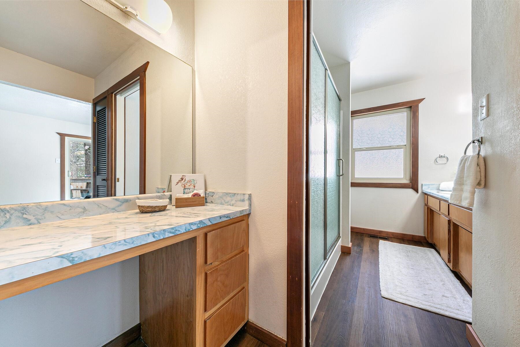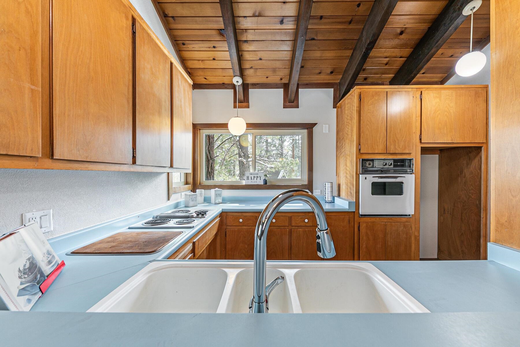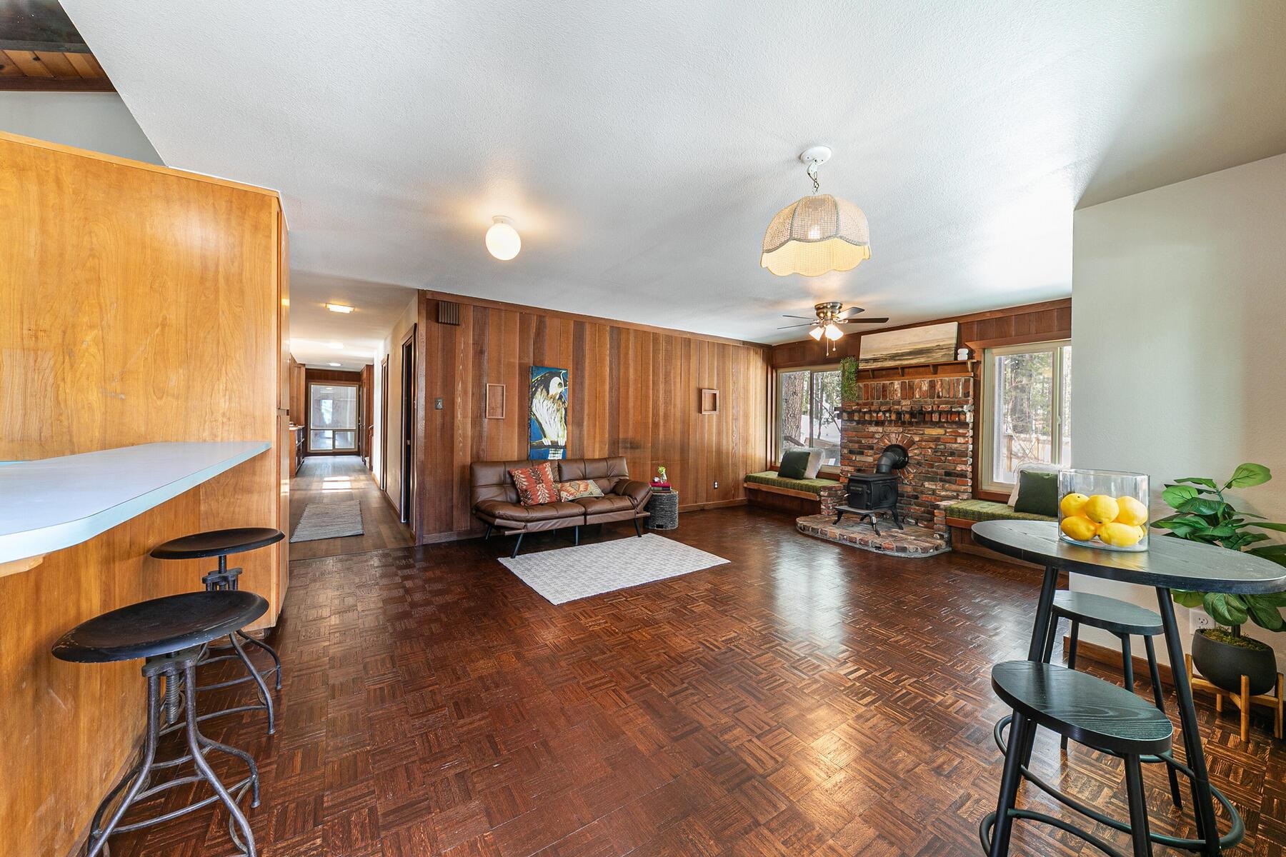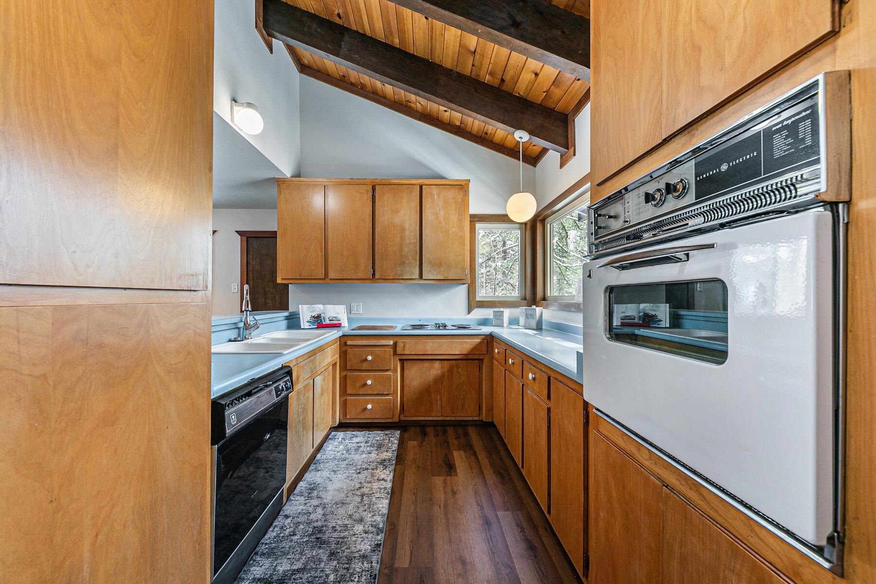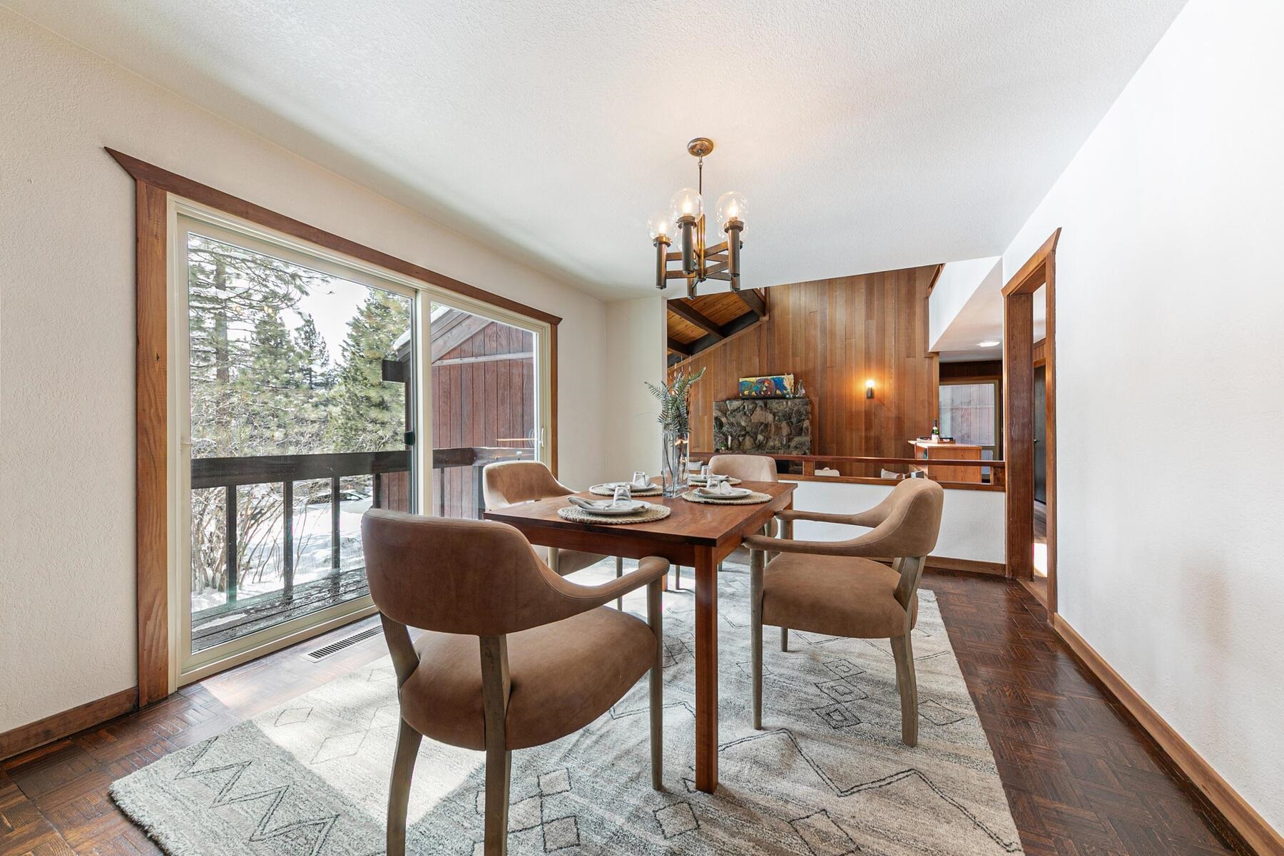Welcome to a rare gem in Truckee's conveniently located Donner Trail neighborhood, just below the scenic Coyote Moon Golf Course. This prime West Truckee location offers easy, walkable access to beloved local restaurants, shops, and top-rated schools including Truckee Elementary and Truckee High. Step inside this spacious two-story mountain retreat, where timeless midcentury design meets everyday mountain comfort. You'll love the soaring vaulted ceilings, warm natural redwood accents, and clerestory windows that bathe the home in natural light. A sunken living room with built-in seating creates a cozy, inviting space for gatherings, while versatile bonus rooms are ideal for a home office, workout studio, or playroom--designed to fit your lifestyle. Relax on the peaceful back deck and take in serene forest views--your perfect spot for morning coffee or quiet evenings under the trees. Lovingly cared for by its original owners, this home offers tasteful updates throughout, along with extra parking for your RV, boat, or camper. With no HOA or CC&Rs, enjoy the freedom to live as you choose. Located just minutes from the sparkling shores of Donner Lake, the charm of historic downtown Truckee, and top-tier medical care at Tahoe Forest Hospital. World-class skiing at Palisades Tahoe, Northstar, and Sugar Bowl is just a short drive away, with easy access to Reno and Sacramento via I-80. This is your opportunity to own a warm, well-maintained mountain home in one of Truckee's most convenient and connected neighborhoods--ready for you to make lasting memories with family and friends.