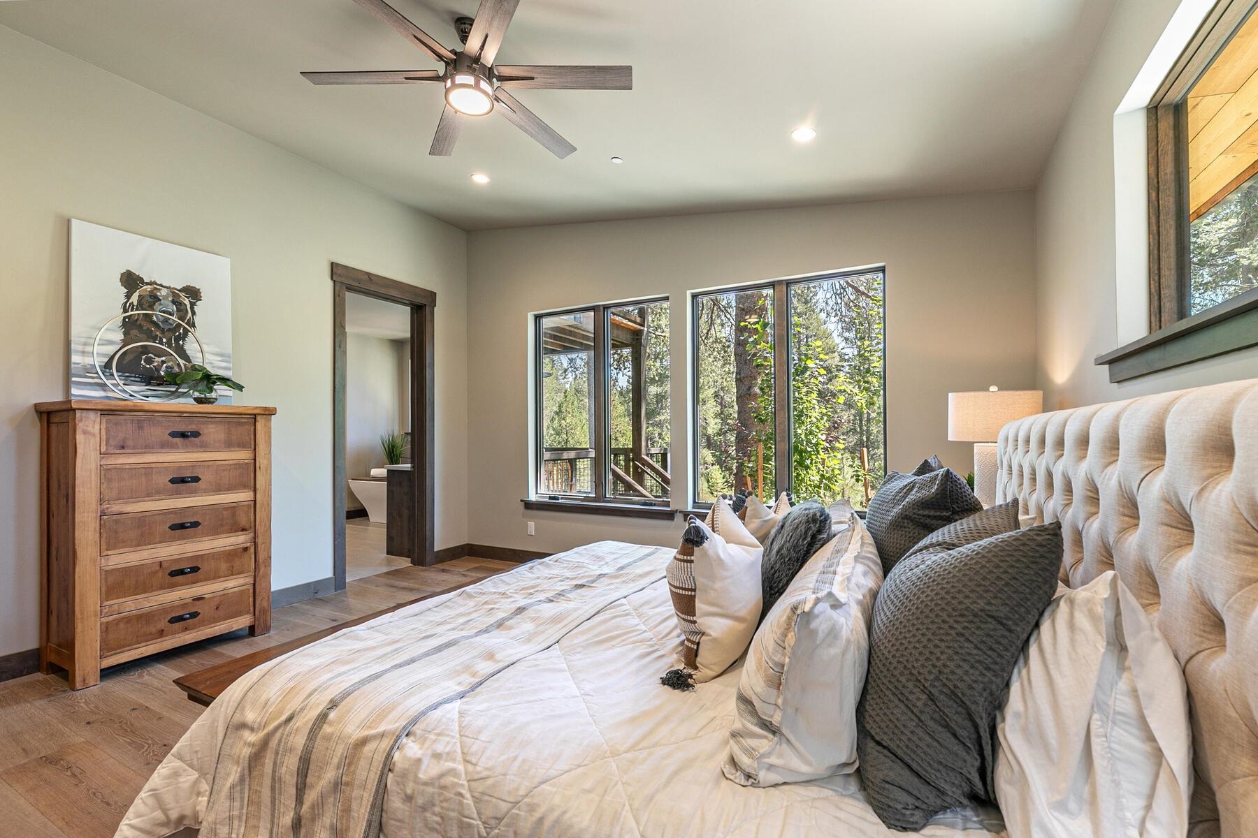Your Dream Mountain Home Awaits Looking for the perfect mountain modern escape? This stunning five-bedroom, three-and-a-half-bath home in Gray's Crossing blends high-end design with everyday functionality--ideal for a lifestyle of comfort, style, and adventure. From the moment you walk in, you'll be captivated by the soaring ceilings, expansive windows, and an open floor plan that floods the space with natural light. The chef's kitchen is a showstopper, featuring WiFi-enabled Thermador appliances, natural stone countertops, and a generous island--perfect for entertaining or enjoying quiet mornings at home. Unwind by the sleek fireplace in the inviting living room, or retreat to the serene primary suite with its spa-like bathroom--a true sanctuary after a day outdoors. The four additional bedrooms offer plenty of space for family and guests, including a versatile office or 5th bedroom on the main floor and an upstairs suite with a private balcony. This home is built for mountain living with modern conveniences: wired for an electric vehicle charger, air conditioning for warm summer days, and a backup generator for peace of mind year-round. Step outside to your oversized deck and peaceful backyard--ideal for sipping coffee in the crisp mountain air or hosting summer barbecues. Located just steps from hiking and biking trails, near the golf course, and with easy access to Tahoe's year-round recreation, this home is a true basecamp for adventure. The spacious three-car garage provides plenty of room for vehicles, toys, and gear. Ready to experience this Gray's Crossing masterpiece? Schedule your private tour today and discover mountain luxury reimagined.