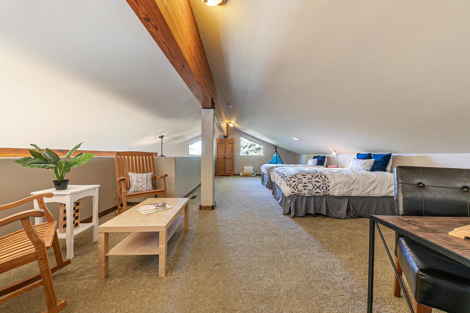 Very Rare offering!!! Welcome to this exceptionally spacious Tahoe Donner home, offering rare flexibility, abundant living space, and a layout perfectly suited for multi-generational living or strong investment potential. Set on an oversized 0.45 acre lot with serene forest views, this residence combines size, versatility, and thoughtful design in one of Truckee's most sought-after communities. The main entry level features a well-designed floor plan with two bedrooms, including a generous primary suite, a guest bedroom, full bathroom, and a convenient laundry room. Enjoy both front and rear decks, two inviting living areas, and a huge chef-style kitchen--ideal for gatherings and day-to-day comfort. Upstairs, a large loft offers excellent flexibility as a home office, playroom, media lounge, or additional sleeping area. The second level is perfect for long-term guests or potential rental income opportunities. One level down, the expansive storage area provides for an outstanding potential for future development, additional living space, or recreational use. A separate workshop/storage room adds even more convenience. Designed with durability and safety in mind, the home includes a metal roof, sprinkler system, fire-wise materials, and a Generac generator for peace of mind. The oversized two-car garage offers ample space plus a pull-out area for additional parking. A furniture package is available, offering an easy, turnkey transition. Enjoy quick access to the Tahoe Donner trail system, plus full use of Tahoe Donner's renowned amenities with ownership--including pools, fitness center, dining, golf, skiing, and recreation. A rare offering with size, flexibility, and location--this Tahoe Donner property is ready for its next chapter.