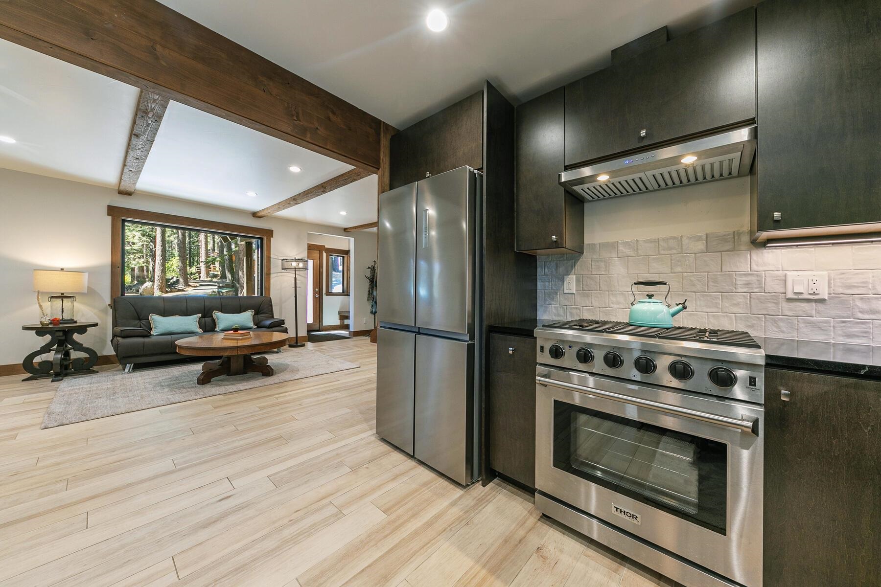Newly-remodeled, year-round home at Donner Lake. Very seldom do homes in the Donner Tract neighborhood come on the market. This unique offering is situated on one-third acre, mere steps from the lake! Enjoy quiet relaxation, with trees and lake views, and exclusive access to the Tract's private beach and piers. The home has been fully remodeled but maintains its original charm, with one main bedroom plus a second loft bedroom. High-end finishes include heated porcelain tile floors, a stone fireplace, and beautiful soapstone countertops. The kitchen and laundry appliances are near new, and a new user-friendly Honda generator is installed for full backup power. Step outside to a serene outdoor living space onto a gorgeous large deck, amidst the trees and views of the lake. The property is surrounded by nature - providing easy access to an abundance of outdoor activities - yet with the convenience of being in close proximity to town. Brimming with desirable indoor and outdoor features, this property offers the perfect blend of an idyllic retreat or comfortable year-round residence. Take advantage of the lake and private beach, scenic hiking trails, and nearby ski resorts - Sugar Bowl, Royal Gorge, Northstar, Palisades Tahoe and Alpine Meadows - to experience unparalleled mountain living! Peaceful, wooded 1/3 acre - Lake views - High-end finishes - Large deck - Steps to private beach - Convenient location.