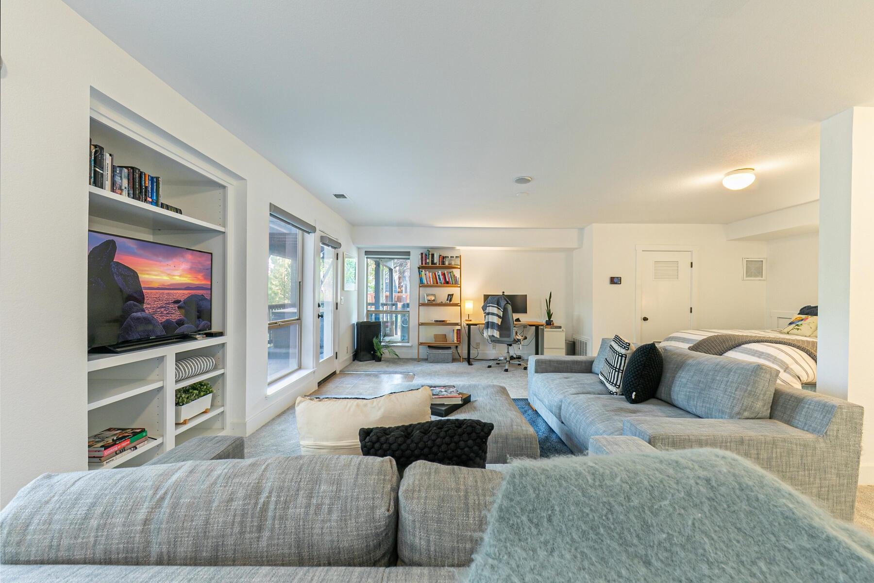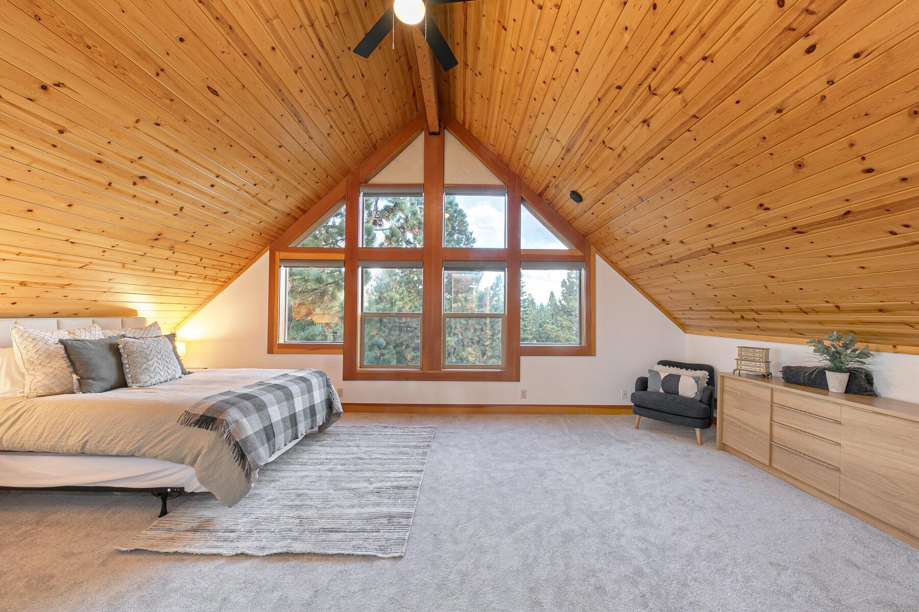 Tahoe Donner Dream Retreat with Direct Trail Access & Modern Upgrades! This beautifully cared-for 4BD/3.5BA + spacious bonus room home blends mountain charm with modern comfort. Imagine mornings with sunlight pouring through your forest view windows, afternoons exploring trails right outside your door, and evenings gathered on the South facing deck under the pines. Here, you don't need to touch pavement to enjoy the Tahoe lifestyle--mountain biking, hiking, snowshoeing, and cross-country skiing all begin out your back door. Designed for togetherness and privacy, this home offers great separation of space with a versatile bonus room featuring its own full bath, laundry, and direct outdoor access--perfect for an in-law suite, office, or bunk room. The oversized primary suite feels like your own personal retreat, complete with a walk-in closet, while multiple living areas ensure everyone has room to relax. The updated kitchen features ample storage and a pantry, making everyday living and entertaining a breeze. Recent upgrades include solar, Tesla Powerwall (no more worries about electricity bills internet disruptions or power outages!), air conditioning, zoned heating, Tesla charger, resurfaced driveway, newly painted interior and exterior, and new carpeting--making this retreat both cozy and move-in ready. Peaceful and private, yet just minutes from Tahoe Donner's cross country and ski centers, Donner Lake and downtown Truckee--this is the mountain lifestyle you've been dreaming of.