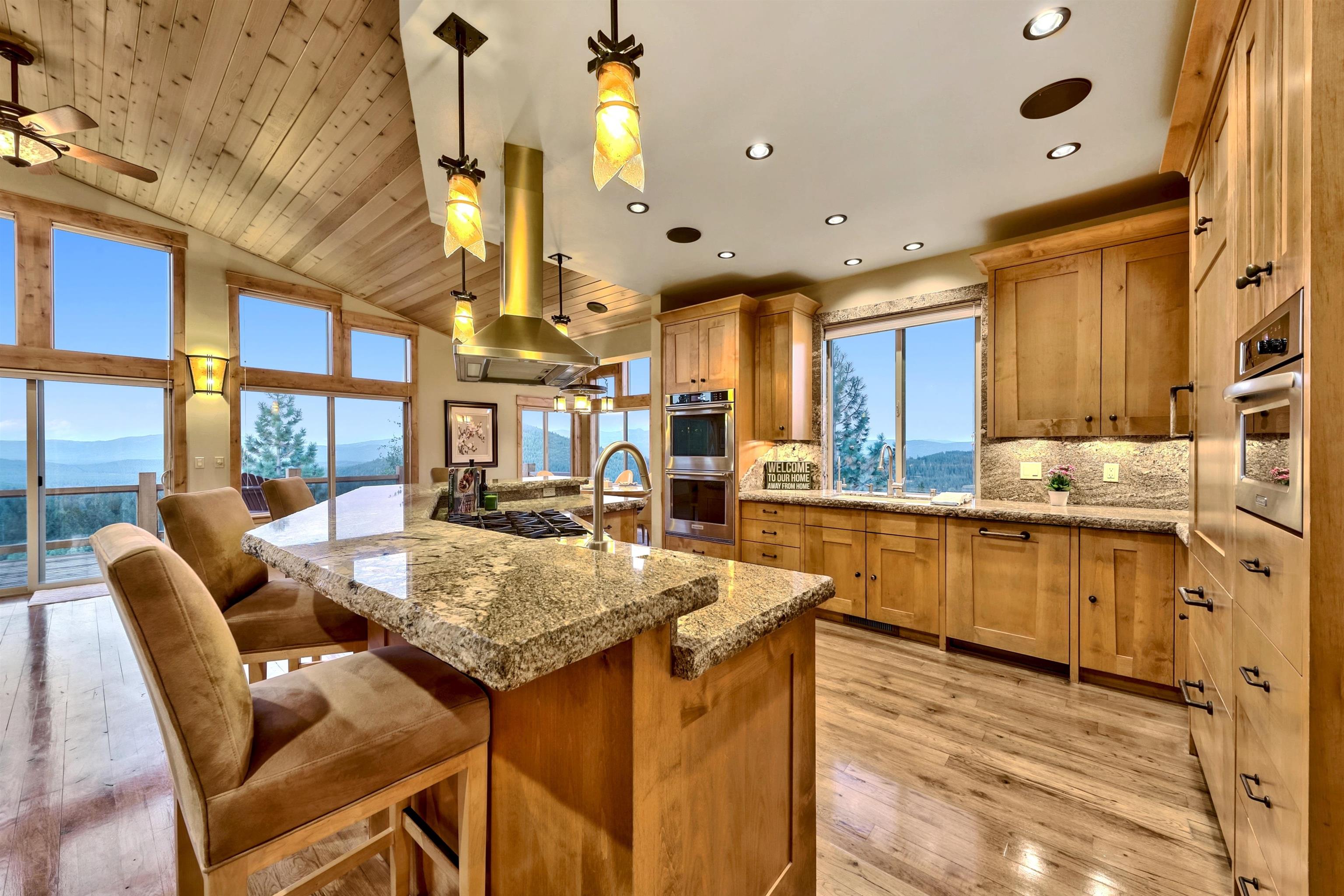 PANORAMIC VIEWS! Are you holding out for an exceptional view property, with the quality of home to match? Welcome to 14710 Wolfgang Road, a custom-built masterpiece by GTJ Construction, in the amenity-rich community of Tahoe Donner. Designed for creating lasting family traditions, this stunning home offers unparalleled craftsmanship and breathtaking mountain views from every window. Perched on a gentle lot at the edge of Tahoe Donner, with wonderful indoor/outdoor flow, the property backs up to a serene common area and National Forest, providing direct access to the trail system and offering a peaceful, private setting. With a thoughtfully designed floor plan, this home is perfect for year-round living or a mountain getaway, making it an ideal place for generations to gather. SPECS: Oversized 0.4 acre parcel, 4 bedrooms (two en-suite), bonus room with wet bar, wine cellar, flex room (workout/office/art studio), 3.5 bathrooms, separate laundry, covered deck with hot tub, stunning stone patio. Details, improvements and upgrades are extensive. Namely: Oversized 3 car garage, dual zone air conditioning, Generac generator, new water heaters, newer central forced air heating unit, appliance upgrades. Exterior stain 2024. Contact your agent for a comprehensive list of features and upgrades.